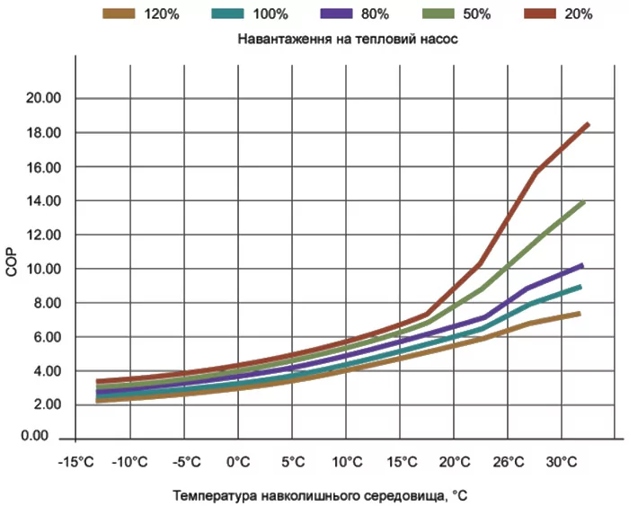 Коефіцієнт ефективності - показує співвідношення отриманих кВт теплової потужності до витраченого 1 кВт електроенергій. Вище COP – краще енергоефективність.