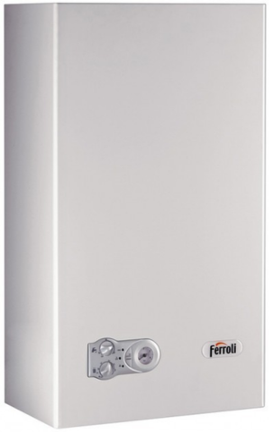 Навісний газовий опалювальний турбокотел відомого італійського виробника Ferroli серії Ferroli Domina F24 застосовується для опалення та приготування гарячої води в приміщеннях з примусовою тягою, площею до 240м2. Це котел з серії Domina F з герметичною камерою згоряння.