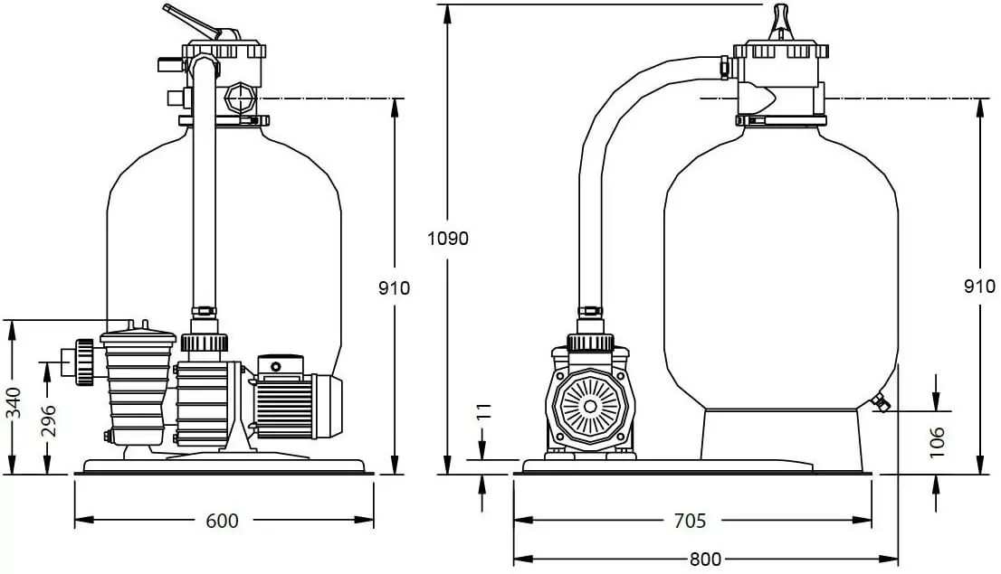 Фільтраційна установка з насосом SW-10M потужністю 0,25 кВт застосовується для механічного очищення води в басейнах об'ємом до 25 м3. Корпус ємності виготовлений з поліпропілену, стійкого до УФ променів та несприятливих погодних умов.