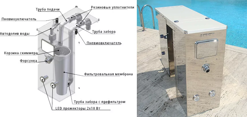 Навісна фільтруюча установка Infiniti 25M з нержавіючої сталі це вже повністю укомплектована система для очищення води в басейні.