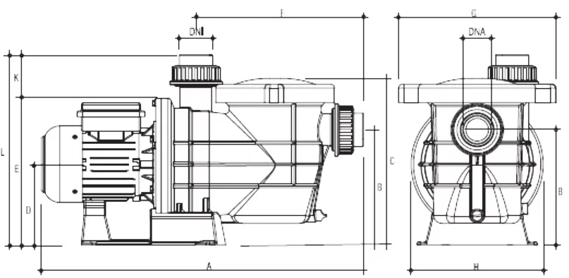 Насос із префільтром моноблочного типу для циркуляції води в системі фільтрації басейну об'ємом до 140 м3. Двигун із мідною обмоткою виготовлений в Італії на сучасному виробництві. Більшість представлених на ринку насосів у цій ціновій категорії використовують менш надійні двигуни з алюмінієвою обмоткою. Статор електродвигуна ізольований від влучення води, повністю залитий смолою. У моторному блоці використані підшипники, вироблені в Японії.