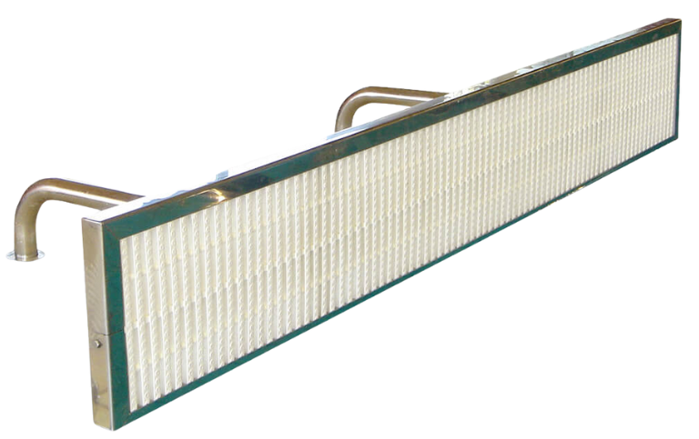 Каркас панелі виконаний з нержавіючої сталі AISI-316, що збільшує опір. Внутрішня основа - протиковзкий склопластик. Висота склопластику 300 мм. Довжина панелі для розвороту 2 метри. Кріпиться в 2-х місцях. Фланцеве з'єднання.