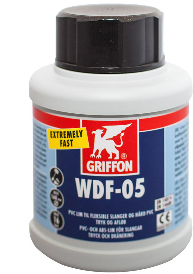 Клей для труб ПВХ Griffon WDF-05 відрізняється високою механічною і термічної стійкості. Тіксотропічна композиція клею спростить процес склеювання - структура прекрасно утримується на похилих і вертикальних поверхнях і утворює рівний шар.