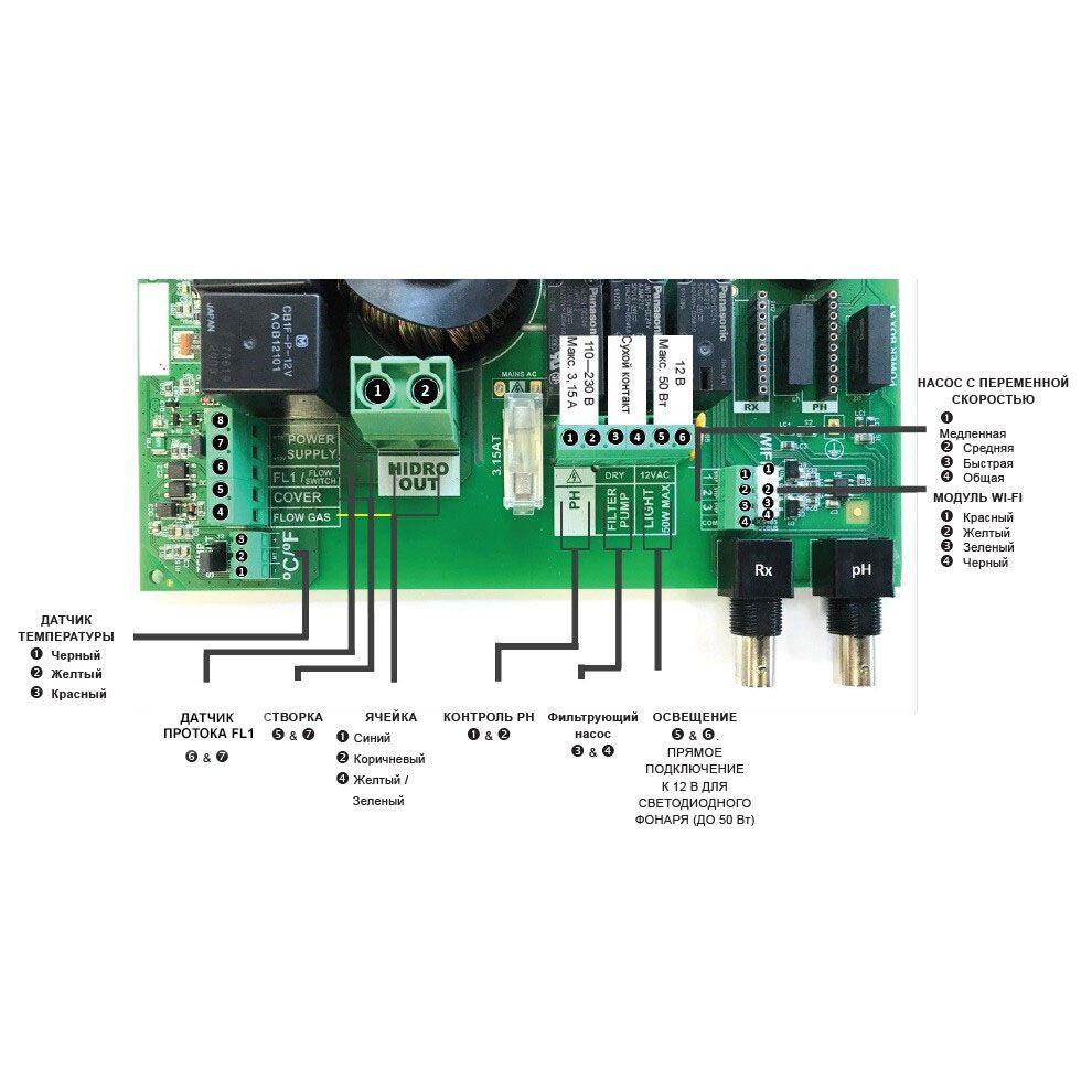 Устаткування може регулювати рівень pH, ORP води. Це опціональні функції, які є не в кожній установці. Також опцією є дистанційне керування за допомогою Wi-Fi. Ви можете завантажити відповідний додаток на будь-який смартфон та планшет.