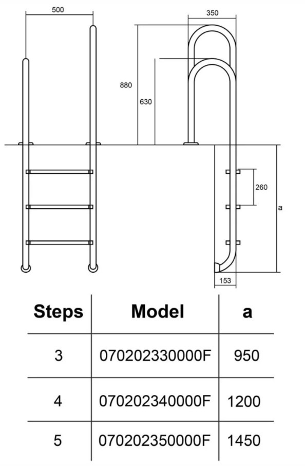 Сходи для басейну Emaux виготовлені з нержавіючої сталі 304 марки.