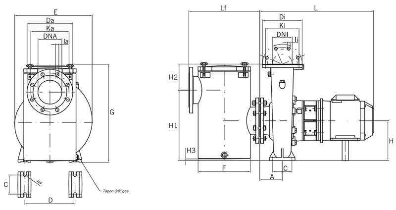 Блок префільтра з'єднаний з гідравлічною частиною фланцевим з'єднанням, таке рішення дозволяє за необхідності використовувати насос як з префільтром так і без нього. Кришка кошика грубої очистки фіксується на відкидних гвинтах з ручною насадкою, для їх зняття не потрібний інструмент. Насос відповідає нормам енергоефективності IE3.