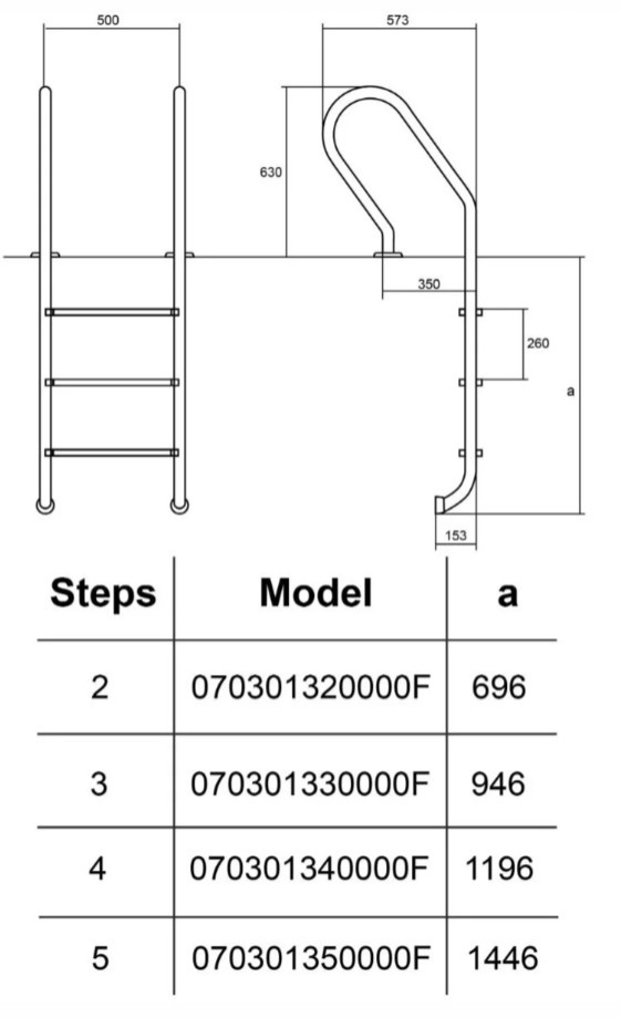 Сходи призначені для безпечного входу та виходу з плавального басейну з вузьким бортиком. Застосовується у приватних та громадських басейнах з лайнером, плиткою/мозаїкою.
