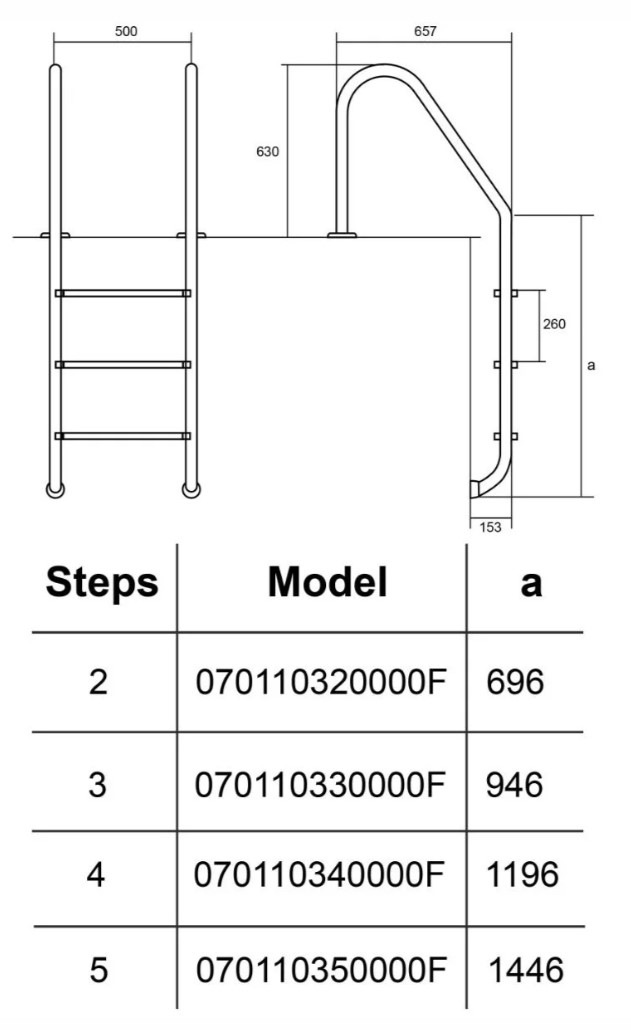 Бренд: Emaux,Кількість сходів: 5,Тип: Сходи з нержавіючої сталі Категорія: Hayward Standard сходи для басейну 2 сходинки для широкого борту