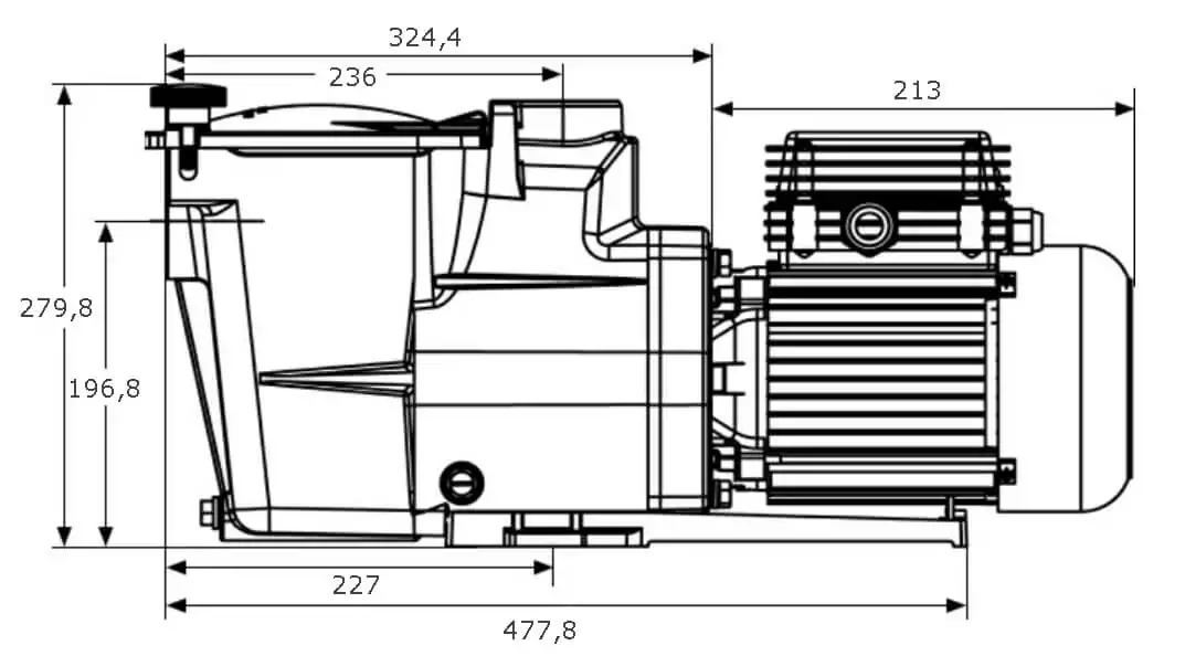 Моноблочний насос із префільтром для циркуляції води в системі фільтрації басейну або штучної водойми об'ємом до 52 м3. Відмінною особливістю насосів серії Super Pro є надійний корпус гідроблоку з поліпропілену армованого скловолокном. Система управління з можливістю вибору однієї із трьох швидкостей для електродвигуна.