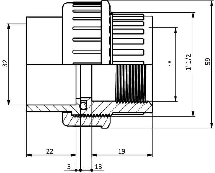 Бренд: Hidroten,Тип: Кульовий кран,Діаметр, мм: 90 Категорія: EFFAST муфта розбірна перехідна з внутрішнім різьбленням PVC-U d32x1"
