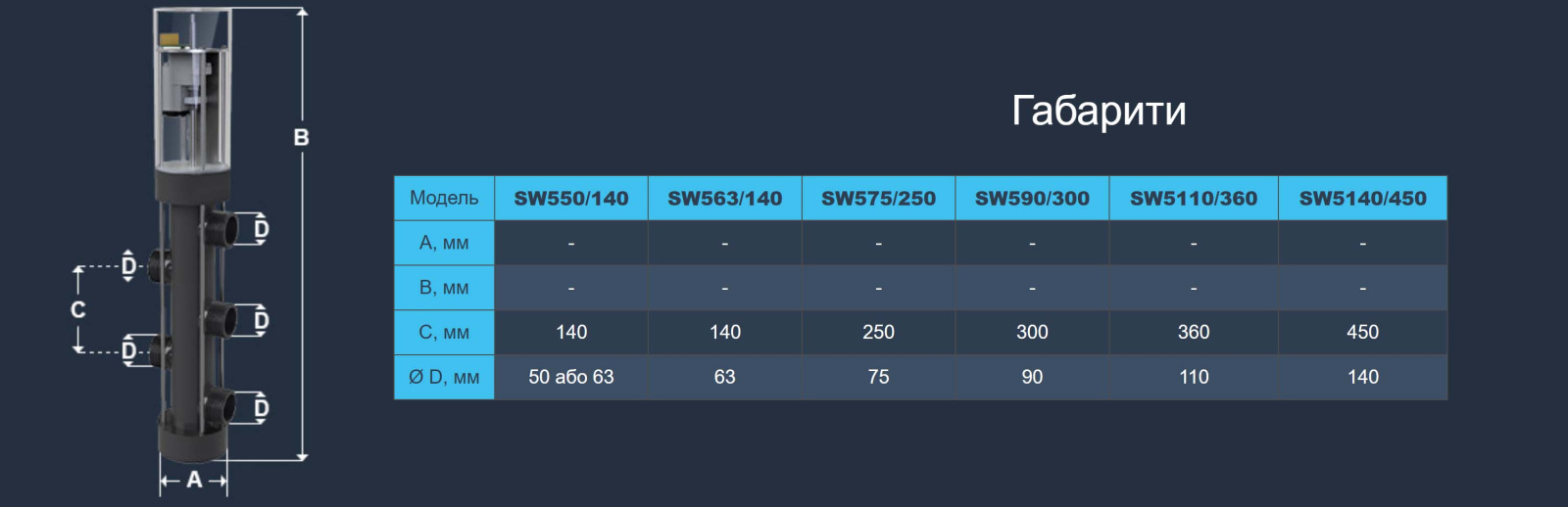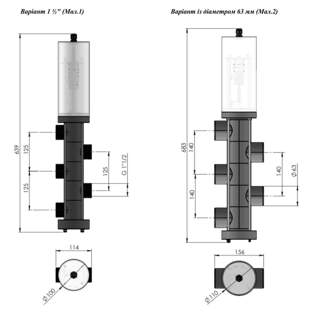 Діаметр підключення трубопроводу - 63 мм 2 ".