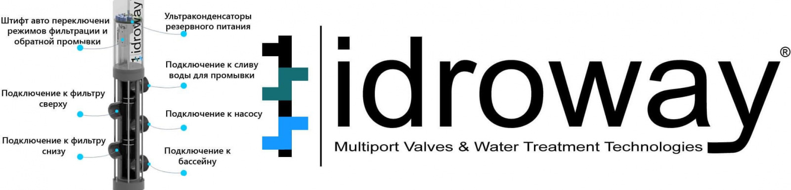 За допомогою такого автоматичного 5-ти ходового клапана від торгової марки Idroway можна використовувати для двох пристроїв один насос. Користувач басейну зможе автоматично перемикати насос на роботу між басейном і СПА наприклад, або іншими водними атракціонами (гідромасажна стінка наприклад, водоспад, протитечія і т.п.).