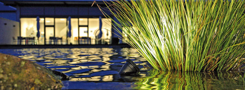 Світлодіодний прожектор для ставка можна встановлювати, як на березі ставка, так і безпосередньо у воді. Це робить можливим водонепроникний клас захисту IP44.
