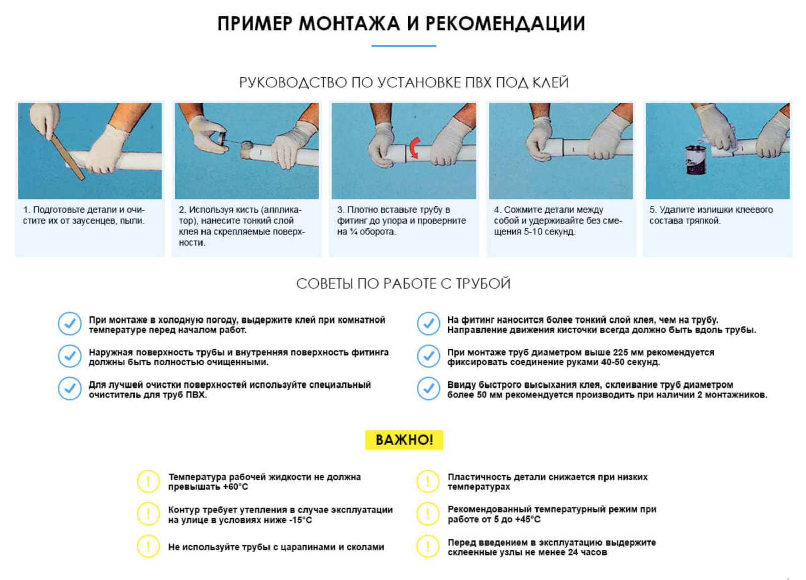 Зручне для монтажу з клейовим з’єднанням (холодна «сварка» ПВХ клеєм)