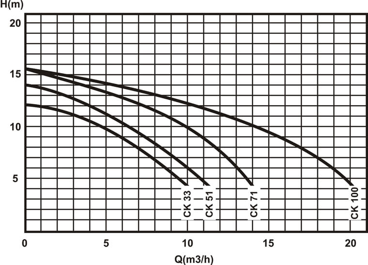 Монтаж CK 33 можливий вище рівня води (до +3 м), так як самовсмоктувальний насос.