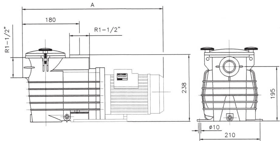 Моноблочний насос із префільтром для циркуляції води в системи фільтрації приватного або громадського басейну об'ємом до 75 м3. Корпус гідроблоку та префільтра виготовлений з інженерного термопластика, посиленого ребрами жорсткості.