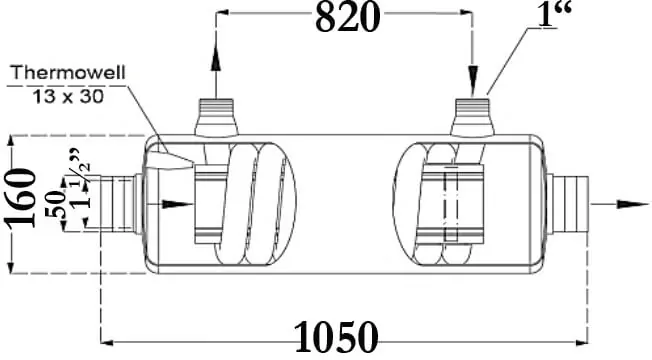 Теплообмінник має нержавіючий корпус, усередині якого розташований нагрівальний елемент у вигляді спіралі. Вода з басейну завдяки насосу системи фільтрації надходить у теплообмінник. Завдяки контакту води зі спіраллю теплова енергія теплоносія передається воді басейну - вода у басейні нагрівається.
