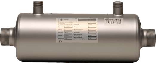 Корпус теплообмінника – титан. Нагрівальний елемент виготовлений із нержавіючої сталі AISI 316.