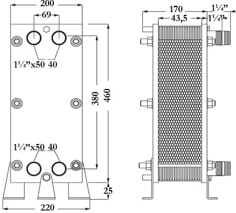 Монтується виключно вертикально. Для правильної роботи вода повинна текти знизу вгору. Приєднання має бути при протилежному напрямку потоку первинного та вторинного контурів.