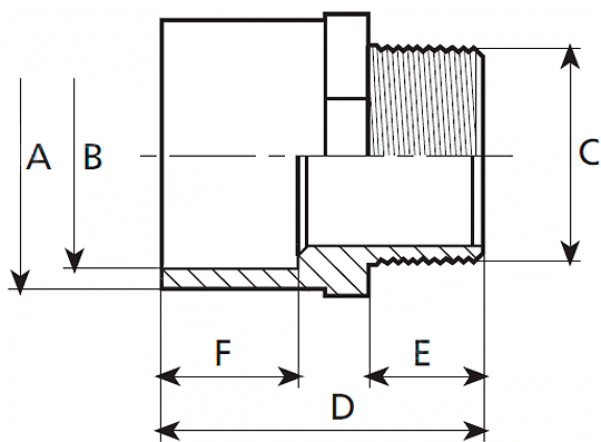 Розмір DN : 32 мм | Розмір A : 40 мм | Розмір B : 50 мм | Розмір C : 1 1/2 " | Розмір D : 62 мм | Розмір E : 21 мм | Розмір F : 26 мм | Вага : 0,062 кг |
