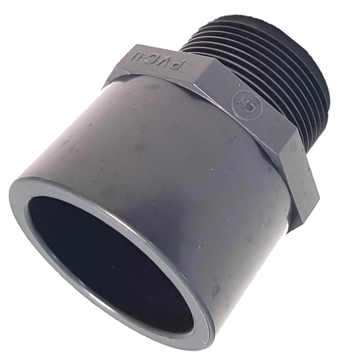 Муфта ПВХ клейова із зовнішнім різьбленням д.90-110х3" Coraplax, одна з різновидів фітингів, застосовується в трубопроводах обв'язки басейну. Основним призначенням даної муфти є з'єднання труб ПВХ і переходу на зовнішнє різьблення.