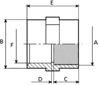 Габаритні розміри ПВХ муфти з внутрішнім різьбленням д.32х1 "Coraplax:
