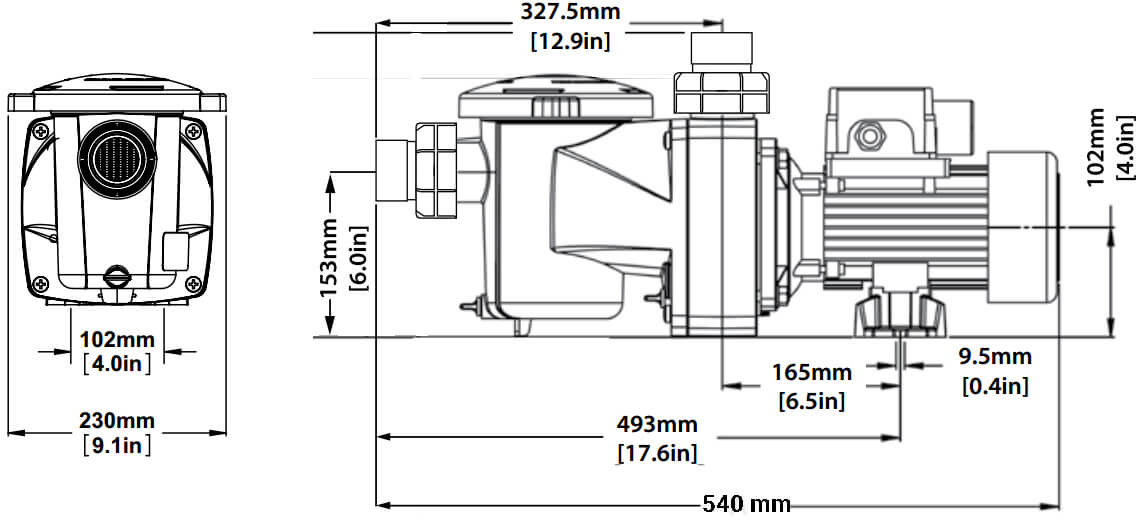 Самовсмоктувальний насос, потужністю 0,25 кВт, для циркуляції в системі фільтрації приватного або громадського басейну об'ємом до 16 м3. Продуктивність насоса складає 4 м3/год. при висоті водного стовпа 10 м.