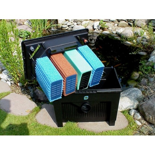 BioSmart 16 000 - це проточний фільтр для ставка, який працює за принципом комбінованого биомеханической фільтрації. У складі фільтра знаходиться ультрафіолетова лампа, яка допомагає зменшити число шкідливих речовин у воді. Вмонтований індикатор рівня забруднень. До фільтру можна підключити кисневий насос. Дана модель виготовлена з матеріалів високої якості, має ергономічний дизайн. Забруднену воду можна злити за допомогою спеціального важеля. У фільтр вмонтований індикатор температури. Рекомендований максимальний обсяг ставка з рослинами - 16000 літрів. У комплекті з фільтром поставляються 6 губки. Фільтр не порушуватиме зовнішній вигляд простору навколо ставка, і не буде кидатися в очі завдяки можливості його приміщення під грунт на 3/4 висоти.