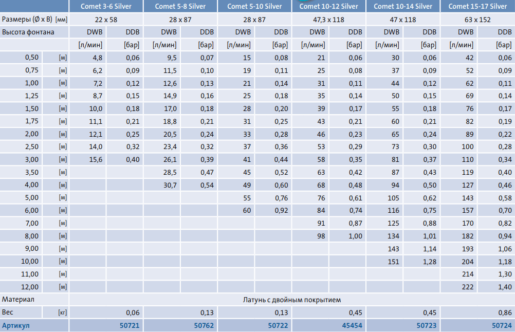 Форсунка характеризується сріблястим зовнішнім виглядом. Матеріал, з якого виготовлена насадка - латунь з покриттям хрому і нікелю.