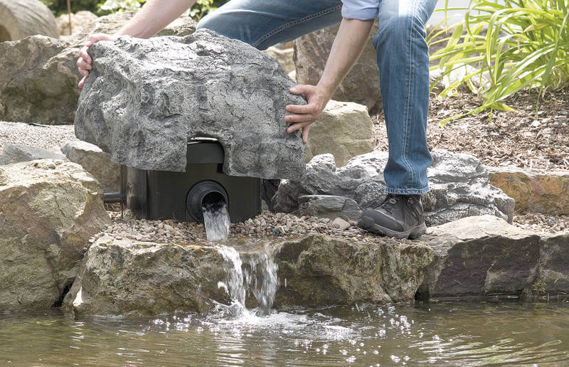 Фільтр для ставка серії FiltoMatic CWS можна з легкістю замаскувати в грунт, таким чином роблячи його максимально непомітним.