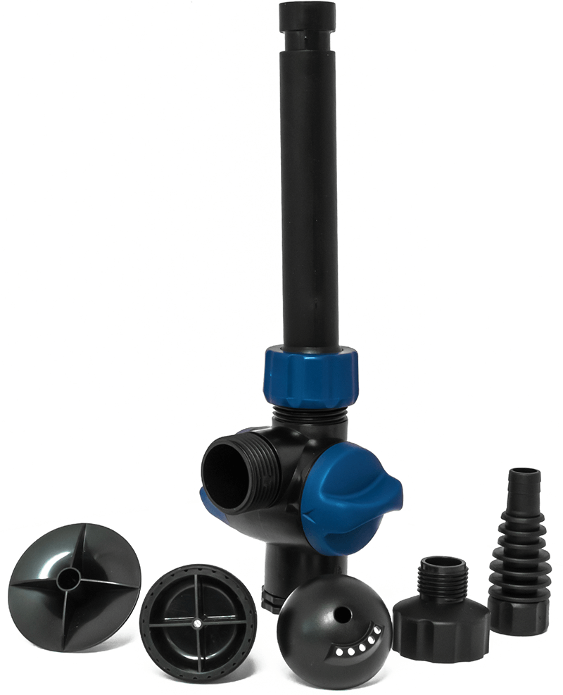 Всі ці три складові спрощують догляд за маленьким ставком, адже все необхідне в одному корпусі. Загальна потужність комплекту 20 Вт. Максимальна висота стовпа води 1,3 м.