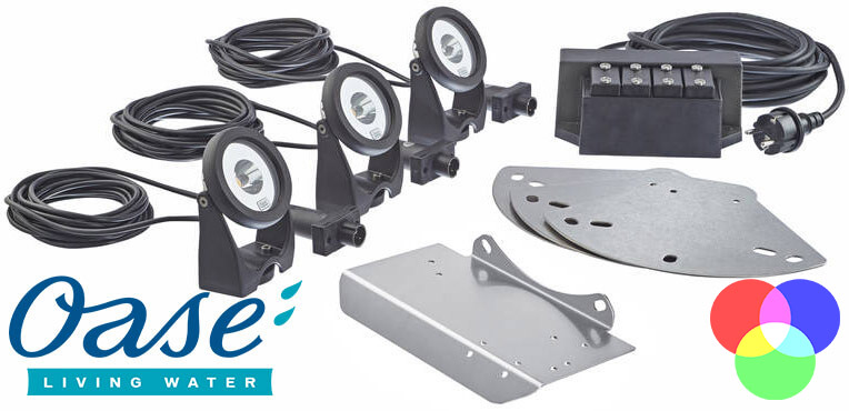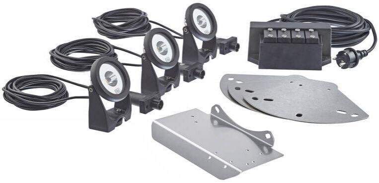 Світлодіодний прожектор для ставка надасть чарівного вигляду штучній водоймі. Комплект складається з 3 компактних LED прожекторів із міцною технологією підводного з'єднання.