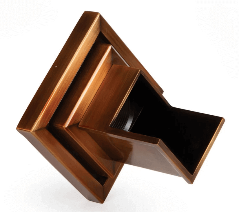 Wall Spout Rhombus Bronze - це джерело для створення водоспаду в басейні, який поставляється в 4 формах, доступний в двох кольорах. Джерело води виготовляється з латуні суцільнолитим методом. Зовнішній вигляд нагадує бронзове виріб. Водозлив запобігає виникненню зворотного потоку під носиком. Усередині виріб може бути оснащено підсвічуванням, для більш ефектного зовнішнього вигляду, навіть у вечірній час. Завдяки задньому розташування входу для води, він ідеально підійде для колон, а також тонких стін. Вага виробу - 1.60 кг, габарити - 126 x 126 x 120 мм. Діаметр вхідного з'єднання - 1 ½ ".