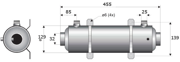 Теплообмінник призначений для нагрівання води в басейні. Як матеріал для виготовлення даного теплообмінника використовується нержавіюча сталь марки AISI-316L. Матеріал характеризується стійкістю до дії кислого середовища.