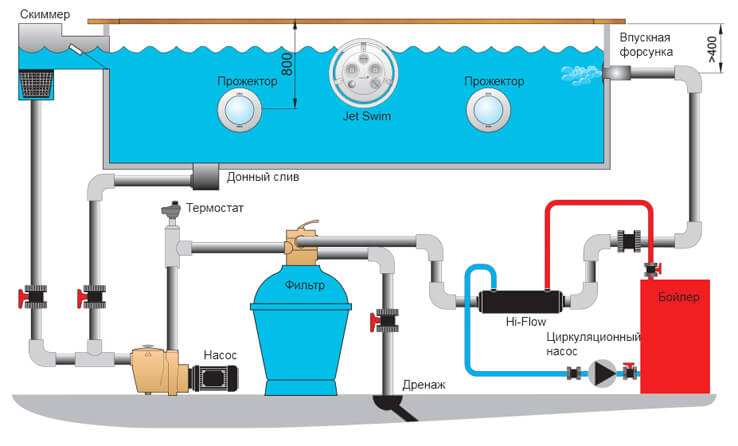 Рекомендуємо встановлювати термостат з виносним датчиком для контролю пристрою підігріву води в чаші басейну. На термостаті можна задавати певне значення температури, у разі перевищення якого автоматично блокується подача води до теплообмінника. Встановлюється на вході теплообмінник.