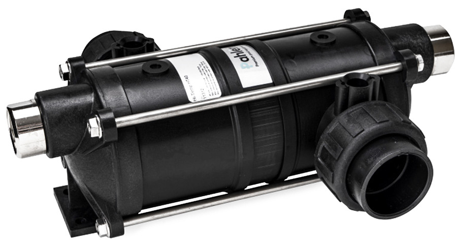 Надійний спіральний теплообмінник використовується для нагрівання води в басейні об'ємом до 300 куб.м. Пристрій виготовляється на заводі Швеції. Якщо різниця температур у контурі становить 60°С, потужність досягає 75 кВт.