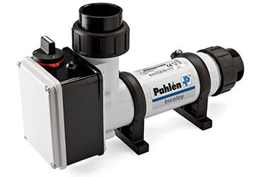 Проточний електронагрівач для басейну від Шведського виробника Pahlen. Корпус пристрою виготовлений із армованого термопластику. Нагрівальний елемент виготовлений із сплаву Incoloy 825, матеріал стійкий до хімічних реагентів дезінфекції басейну.