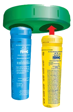 Картридж Fresh Mineral ® (синього кольору) містить унікальні мінерали активно бореться з шкідливими мікроорганізмами, перетворюючи воду в спа ванні кристально чистою. Бактерицидна дія картриджа Fresh Mineral® триває 4 місяці. По закінченню цього періоду картридж слід замінити. Картридж SmartChlor ® (жовтого кольору) містить знезаражувальний елемент - бром, один з найефективніших спосіб дезінфекції гарячої води в гідромасажних ваннах. Дія картриджа SmartChlor® триває 2-4 тижні, залежно від частоти використання. По закінченню цього терміну слід замінити картридж. За допомогою поплавка картриджних система плаває у воді спа ванни знищую небажані мікроорганізми.