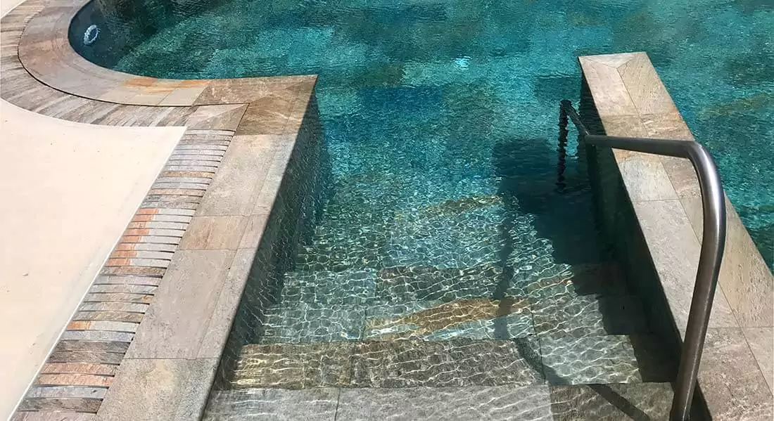 Плитка володіє високою стійкістю до ультрафіолетового випромінювання, низьких і високих температур, впливу агресивних речовин, що використовуються в басейні.