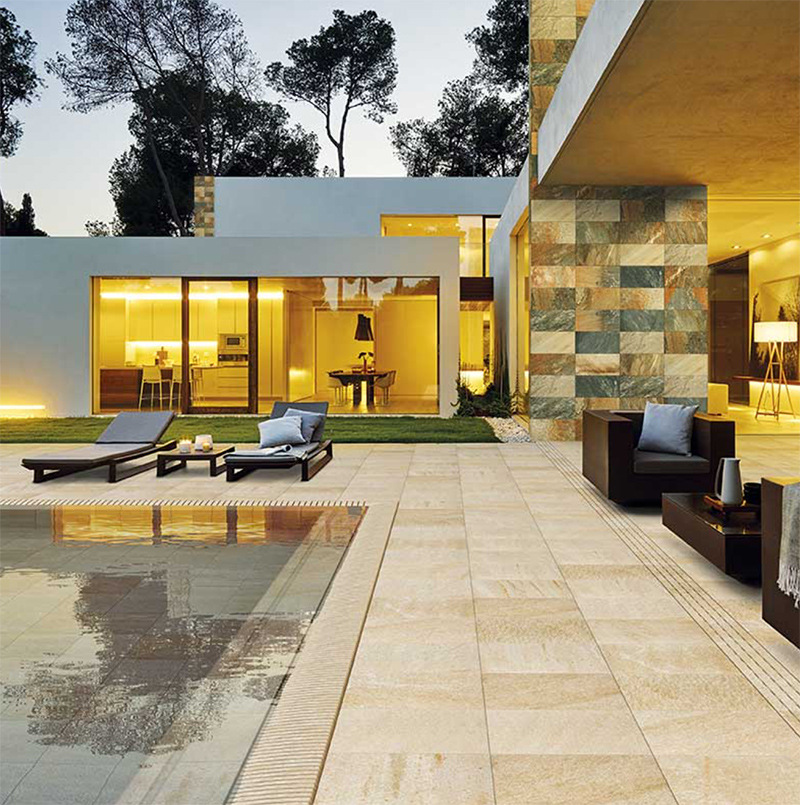 Колекція представлена у різноманітних форматах та доповнена спеціальними елементами: сходами, бортиками, зливними ґратами та кутовими деталями.