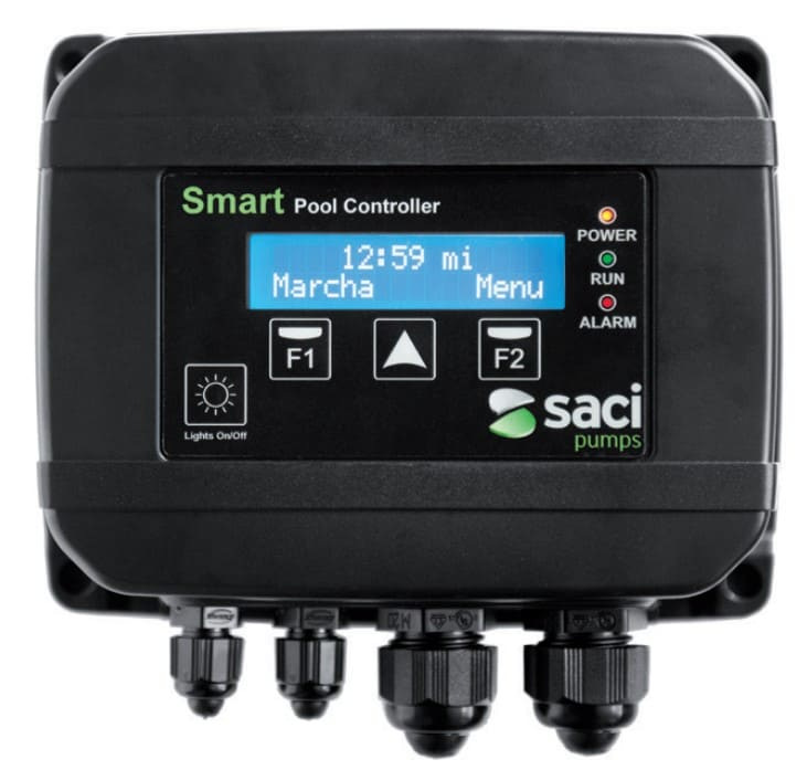 Насос обладнаний системою Saci SMART Control, яка включає необхідний захист насоса, таймер, управління системою освітлення, дозування, нагріву і т.д. Система SMART Control замінює традиційну панель керування басейном.