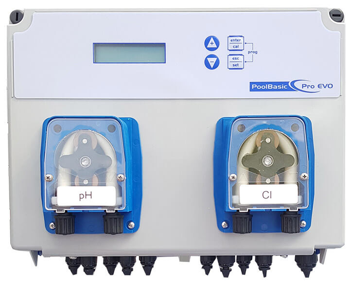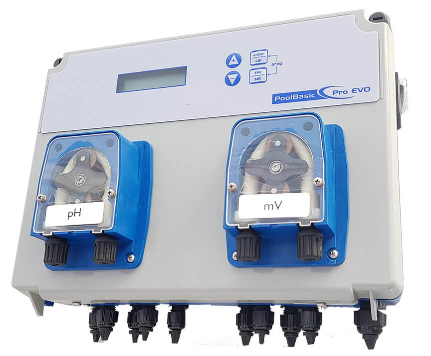 Рішення для автоматизації контролю параметрів води в басейнах, системах очищення води та інших промислових процесів. Пристрій оснащений перистальтичними насосами з продуктивністю 1,5 л/год та вбудованою системою моніторингу та ключовими параметрами, такими як рівень pH та окислювально-відновлювальний потенціал RX, а також контроль нагрівання та фільтрування.