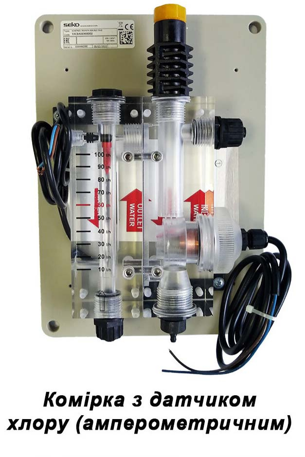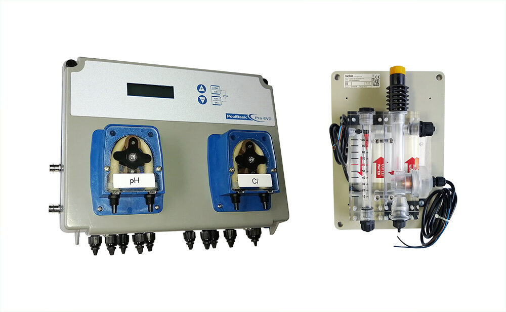 У комплект входять 2 перистальтичного типу, що дозують насоси. Станція вимірює показники pН та вільного хлору, а також в автоматичному режимі постачає необхідну речовину у потрібній кількості.