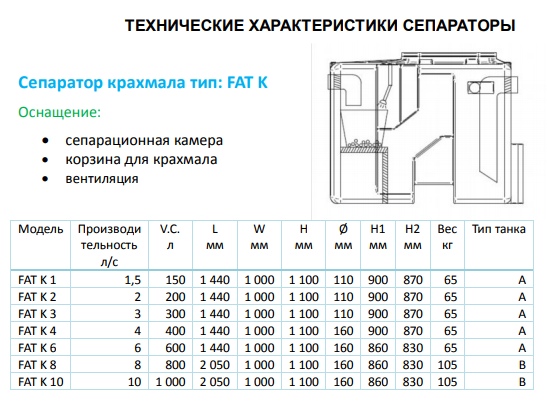 Жирові і крохмальні сепаратори типу FAT застосовуються для відділення жирів рослинного і тваринного походження і крохмалю.