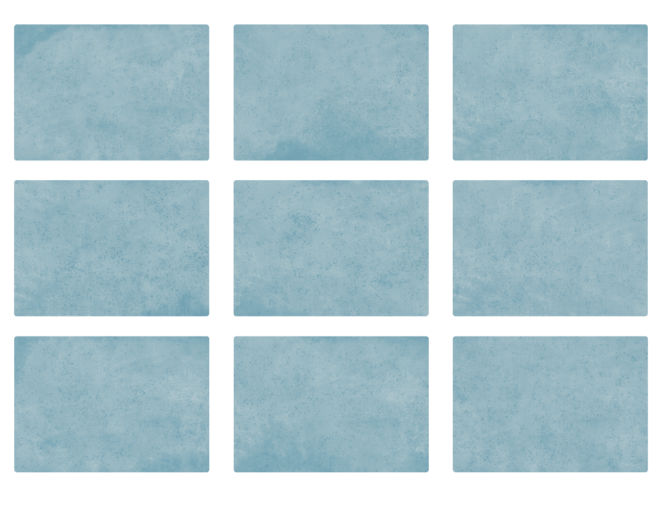 5×5 см, 10×10 см, 11×33 см, 16,5×16,5 см, 16,5×66 см, 33×33 см, 33×66 см.