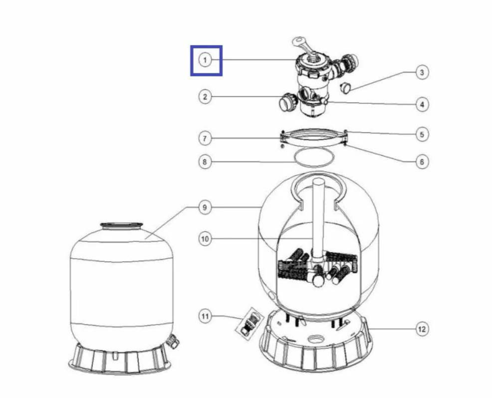 Шестипозиційний кран – незамінний елемент для керування фільтрацією басейну. Він забезпечує зручне та безпечне перемикання режимів роботи фільтрів EMAUX серії V800-1200, дозволяючи швидко проводити фільтрацію, промивку, зворотне промивання, злив води та циркуляцію без демонтажу обладнання.