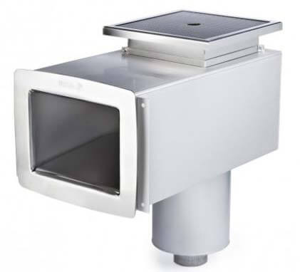 Аналог скімера Pahlen зі стандартною горловиною з нержавіючої сталі під лайнер (112981), але з виходами для доливання, переливу та кабелю датчика рівня.