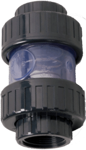 Sorodist зворотний клапан ПВХ пружинний прозорий 63 мм, одна з різновидів фітингів, застосовується в трубопроводах обв'язки басейну. Матеріал заглушки ПВХ (полівінілхлорид), стійкий до корозії і агресивного середовища. Монтаж прозорого зворотного клапана ПВХ Sorodist здійснюється за допомогою клею ПВХ для труб і фітингів. Робочий тиск 16 BAR при температурі 20С. Температура застосування 0-40С.