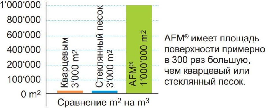 Мікроструктура AFM® перешкоджає розвитку бактерій та утворенню біоплівки всередині фільтра, що забезпечує стабільну та високоефективну фільтрацію води. Засипка підходить для використання у басейнах, аквапарках, питних та промислових системах водопідготовки.