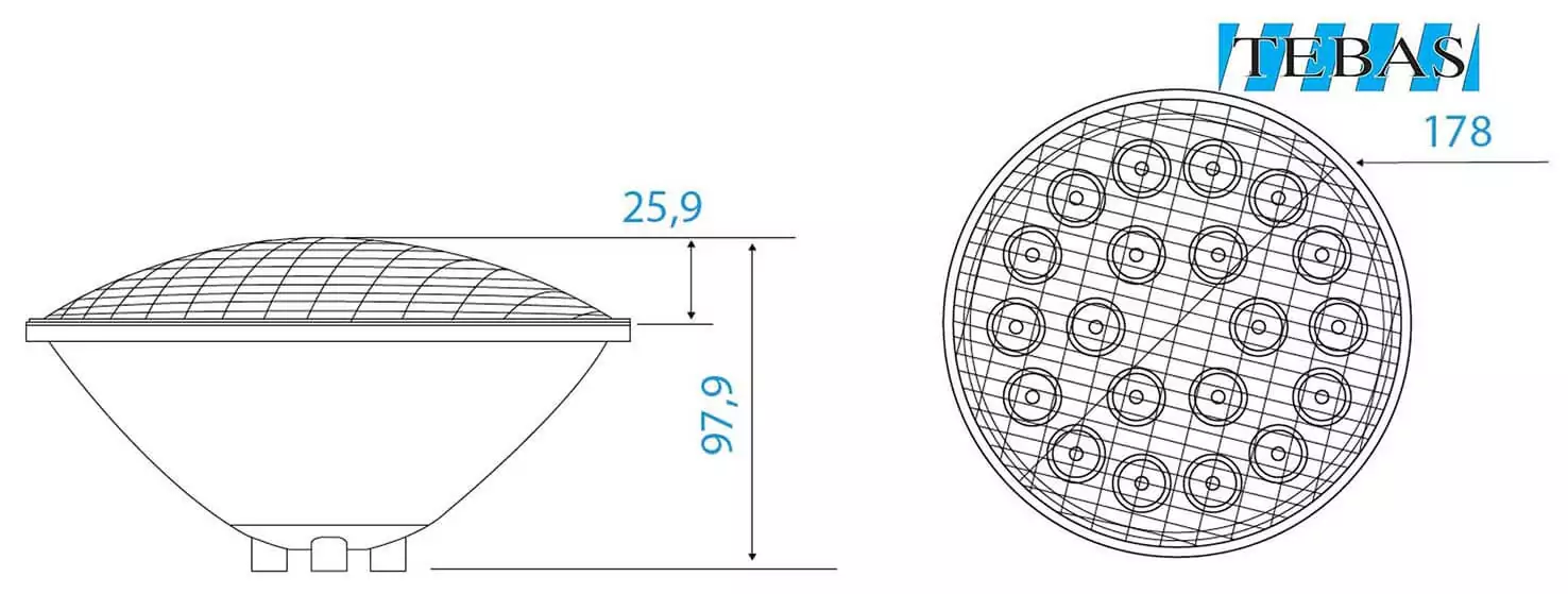 Змінна лампа Tebas Led Maxi для прожекторів є ефективною (до 25%) альтернативою галогенних змінним лампам, споживає набагато менше електроенергії. Підходить до будь-яких типів облицювання. Лампа світить холодним білим світлом. Світловий потік 920 люменів.